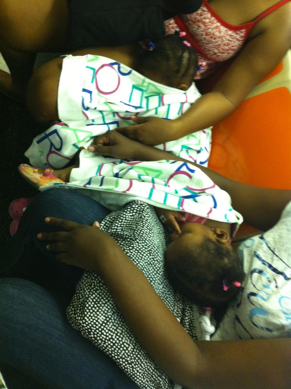 Utilizing the seat for TWO people (as a bed!) PLUS quiet children for a smooth train ride! 🙂