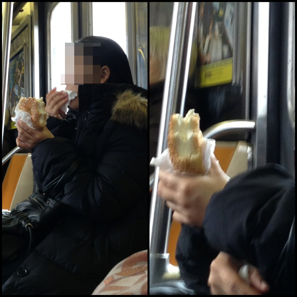 There is SO MUCH cream cheese. YUMMY :) I love people who eat on the subway xoxo