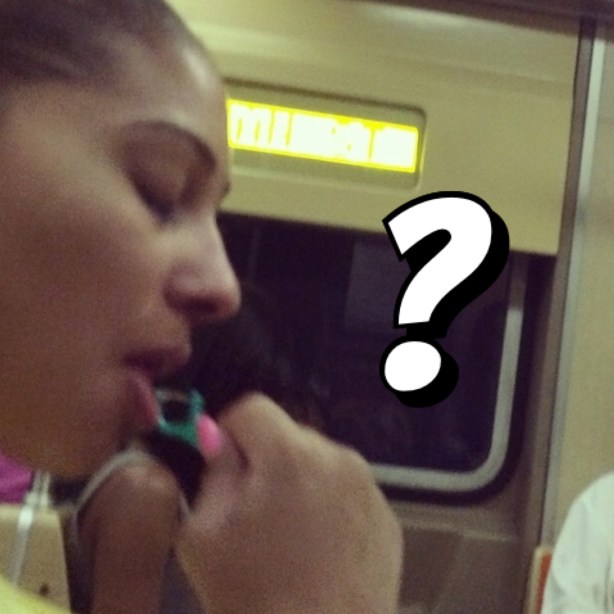 Flossing on the subway. :)