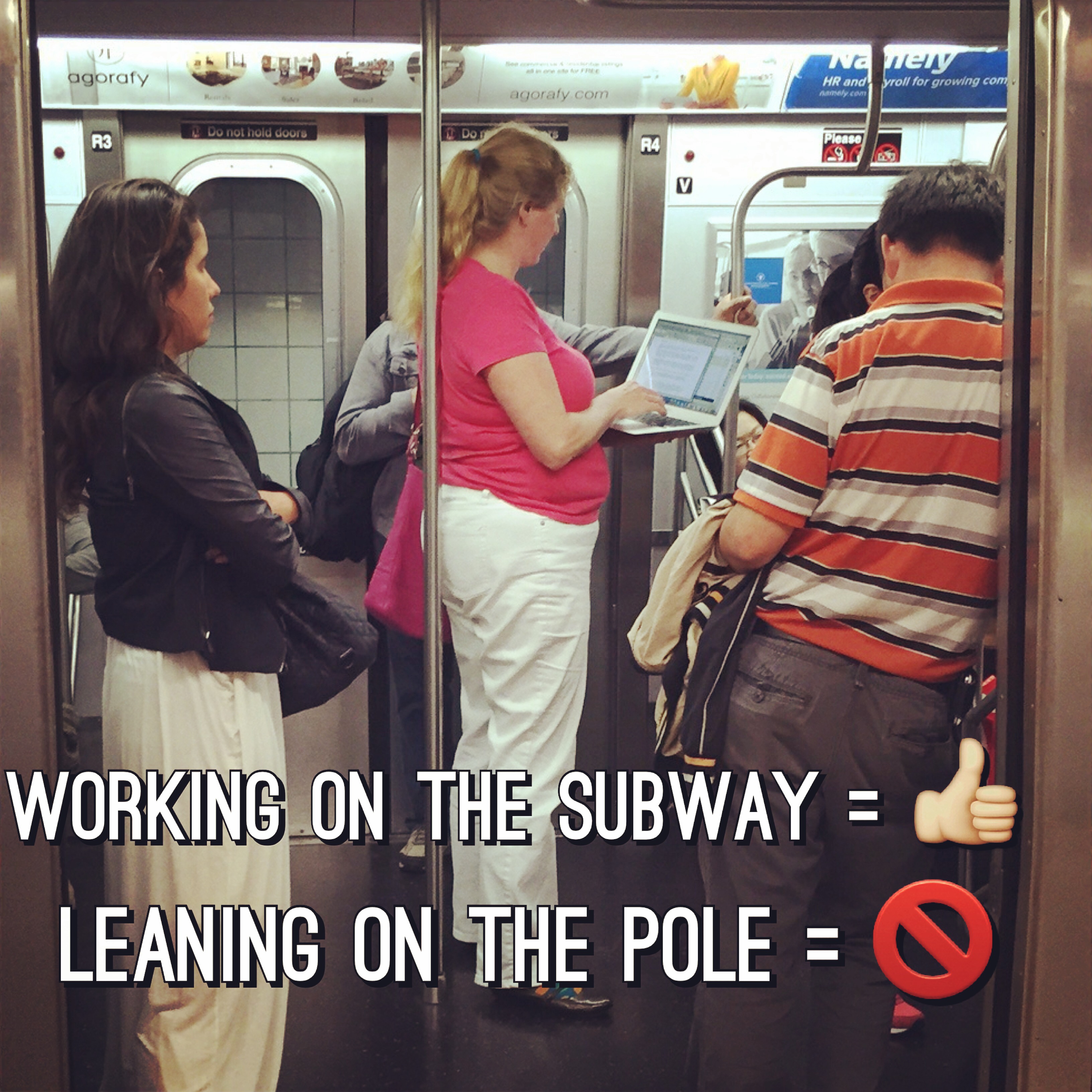 Fast-paced NYC life sometimes means working during your commute. Do it respectfully. Thanks :)
