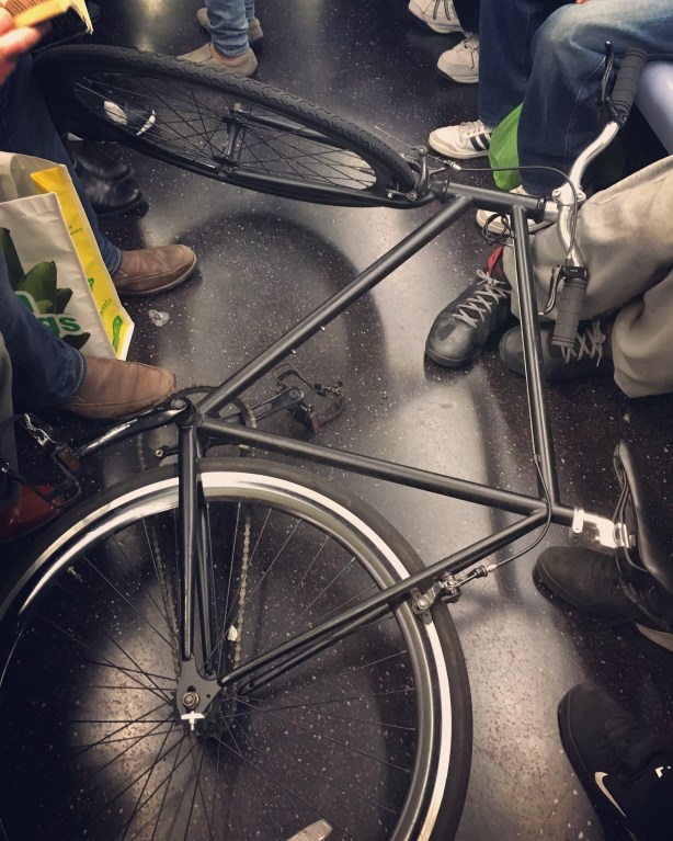 Anyone missing a bike? This one is laying here on the 2 train unclaimed. — Photo by Melissa C.