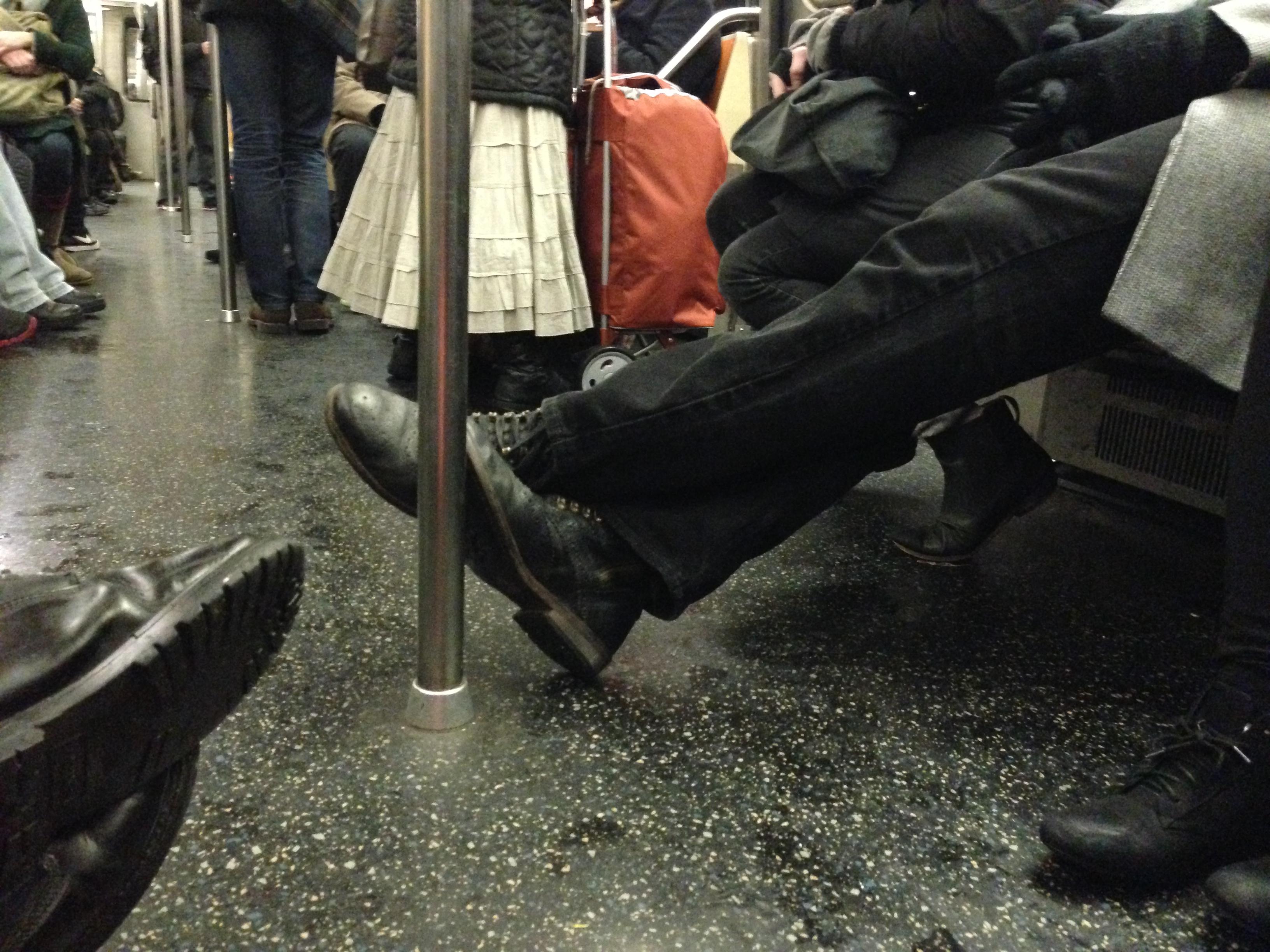 Well at least HE’S comfortable. Everyone else had to run into me trying to get around his “clown” feet.