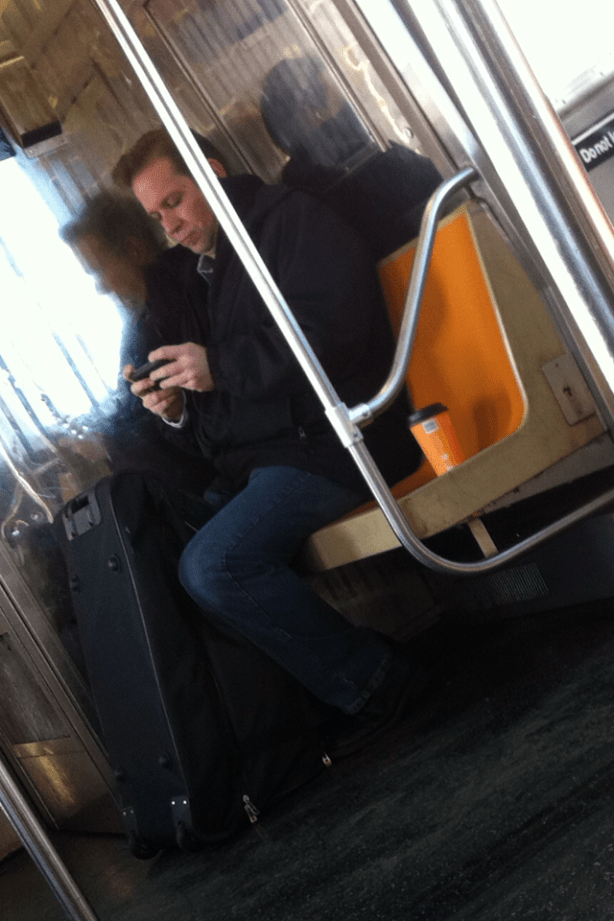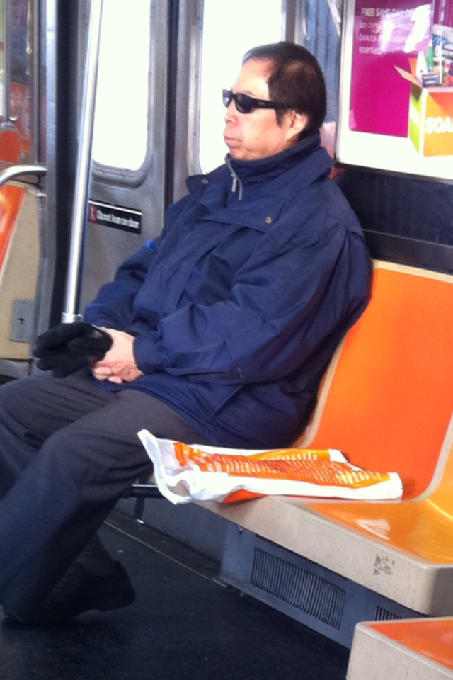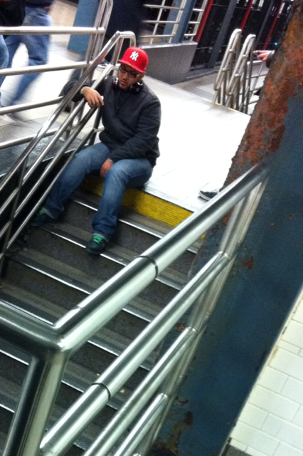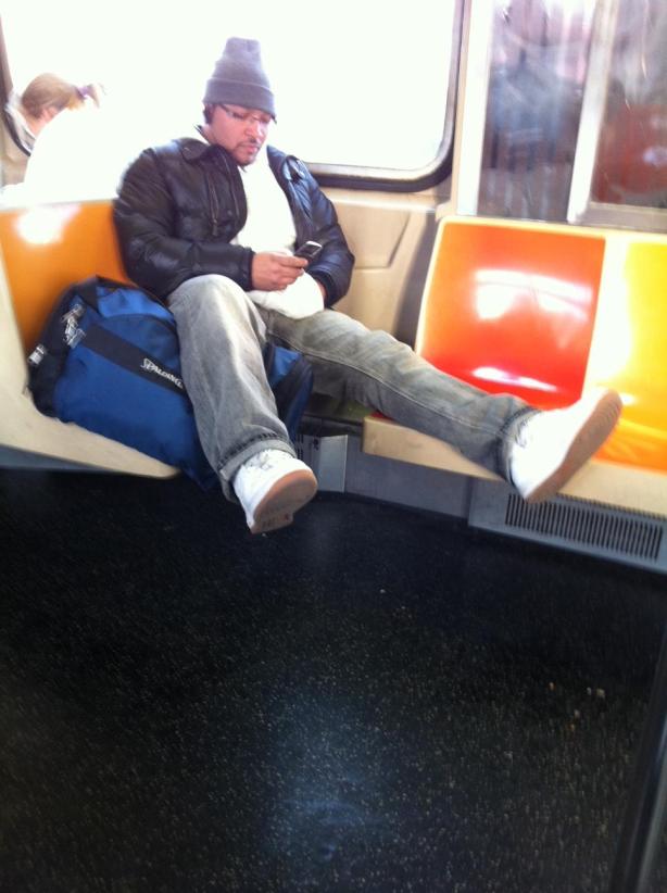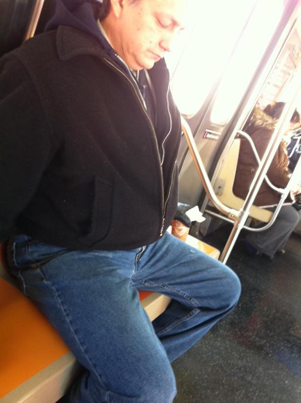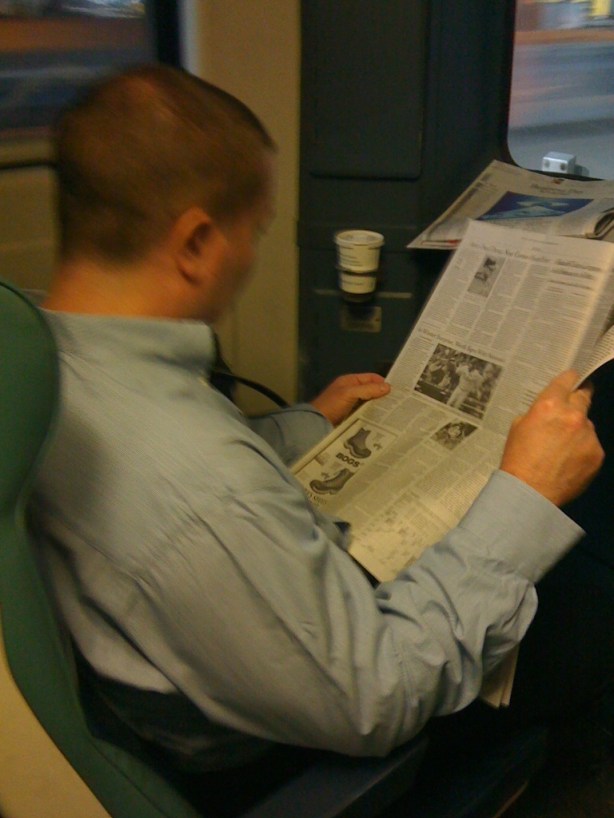 Using a seat for his morning kawfee and paper!
